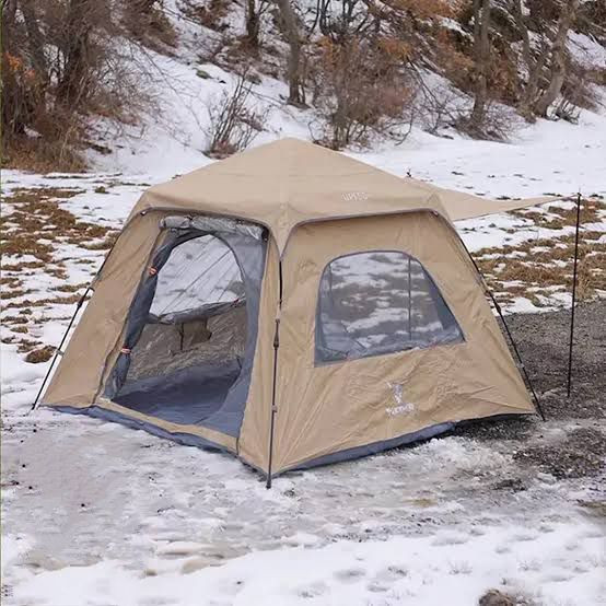 چادر مسافرتی 4 الی 5 نفره اتوماتیک کله گاوی مدل C1022 با ظرفیت4 تا 5 نفره خواب، دو درب و پنجره توری دار، پارچه ضد آب و تجهیزات کامل مانند میخ، چکش و سایبان.