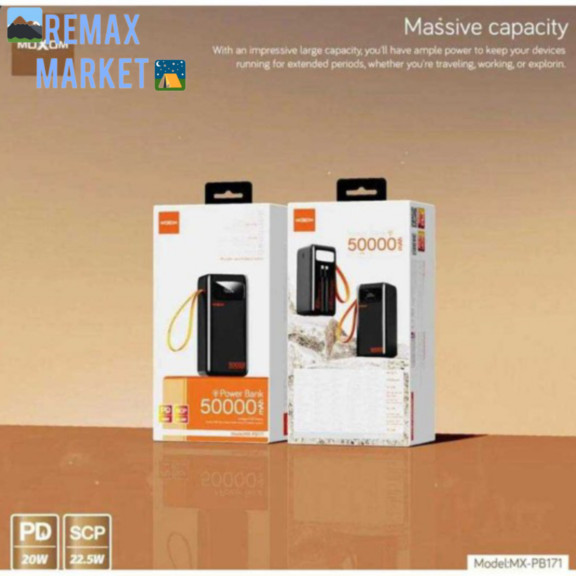 پاوربانک MOXOM MX-PB171 یکی از گزینههای قدرتمند و اقتصادی برای افرادی است که به ظرفیت بسیار بالا نیاز دارند. با 50000 میلیآمپر ظرفیت و Fast Charge 22.5W، این پاوربانک میتواند چندین بار انواع گوشیها، تبلتها، هندزفری و اسپیکرها را شارژ کند و برای سفر، کمپینگ و استفاده روزانه انتخابی عالی است.