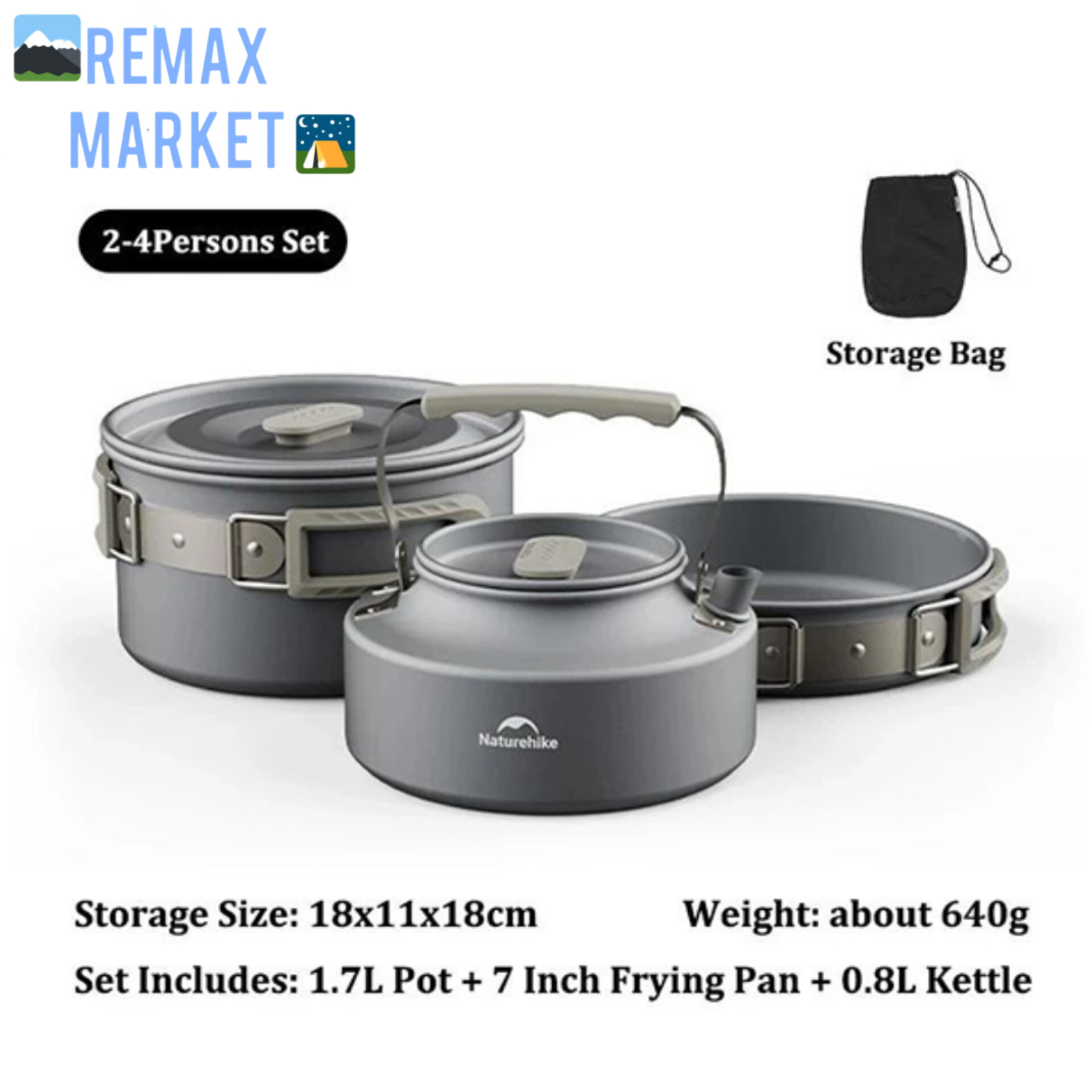 ابعاد مناسب: قابلمه با حجم 1.7 لیتر، ماهیتابه با قطر 17.5 سانتیمتر و کتری با ظرفیت 0.8 لیتر، مناسب برای گروههای کوچک 2 تا 4 نفره.